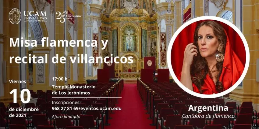 La Universidad Católica de Murcia celebrará este viernes una misa flamenca en la que actuará la cantaora Argentina, según informaron fuentes de la institución docente en un comunicado.
