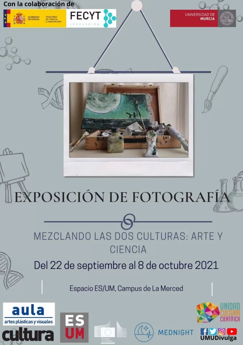 La Universidad de Murcia expondrá las obras del concurso 'Mezclando las dos culturas: Arte y Ciencia'. La exposición será inaugurada este miércoles 22 de septiembre a las 11.00 horas en el Espacio ES/UM de La Merced, lugar donde podrán disfrutarse hasta el próximo 8 de octubre.