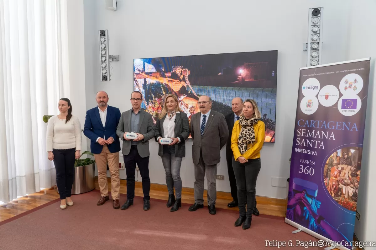 El Ayuntamiento de Cartagena acaba de presentar esta innovación tecnológica desarrollada por la Comunidad Autónoma a través de la Fundación Integra. La misma ha contado con una inversión de 30.000 euros, sufragada por la Unión Europea. Las gafas y las grabaciones quedarán a disposición de la Junta de Cofradías de la Semana Santa de Cartagena.