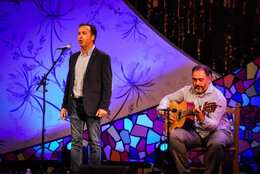 El director del festival, Juan Tomás Frutos, el presidente de la Peña Flamenca 'Melón de Oro', Mariano Escudero, y el alcalde de Torre Pacheco, Antonio León, fueron los encargados de realizar la entrega del galardón en un emotivo acto al que continuó la improvisación del propio Javier Andreo con la guitarra de Tomás del Carmelo Loba.