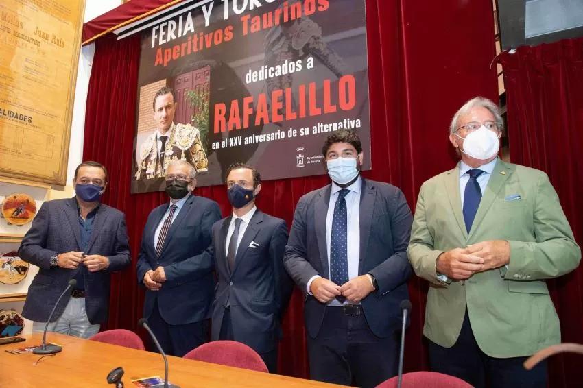 López Miras aseguró que "el día de hoy es agridulce porque no hay Feria Taurina de Septiembre y Rafaelillo no podrá estar esta tarde en la Condomina, pero desde el Gobierno regional vamos a colaborar en todo lo posible para que el diestro pueda celebrar su 25 aniversario en el coso murciano".