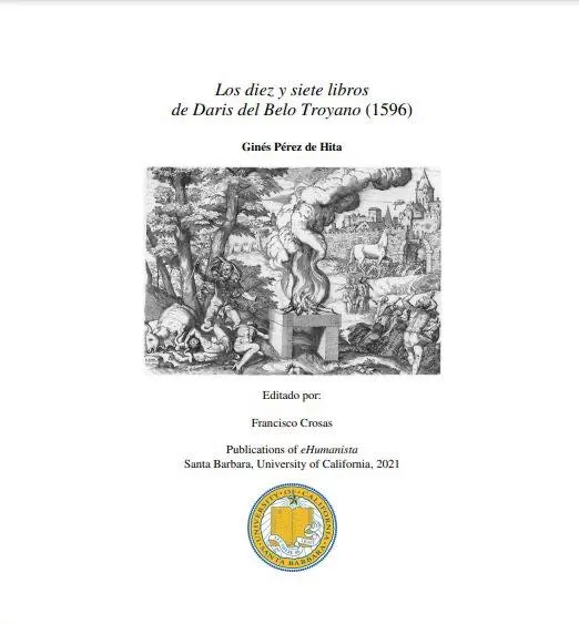 Dicho libro de 1596 cuenta una historia de la guerra de Troya, materia de interés entonces, como lo fue la novela de caballerías después. El manuscrito no contiene prólogo alguno ni aprobaciones. Entre 1596 y 1597, en viaje a Madrid, consigue el privilegio para su publicación, privilegio y libro que vende el 20 de enero al librero Juan García, de Alcalá de Henares.