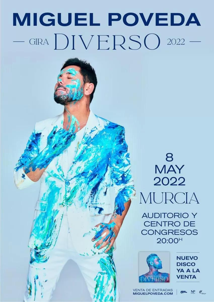 Después de presentar en el Teatro Real de Madrid su nueva gira 'Diverso', Miguel Poveda ha anunciado un nuevo concierto en Murcia el próximo 8 de mayo, en el Auditorio y Centro de Congresos Víctor Villegas.