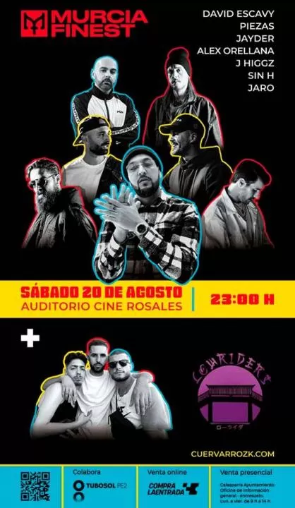 Murcia Finest es un colectivo de artistas integrado por los murcianos Jayder, Piezas, Alex Orellana, Sin H, Jaro, el calasparreño David Escavy y el galés J Higgz. De la mano del productor y DJ Jayder este grupo de raperos lleva muchos años dejando la reputación del talento de la región a muy buen nivel.