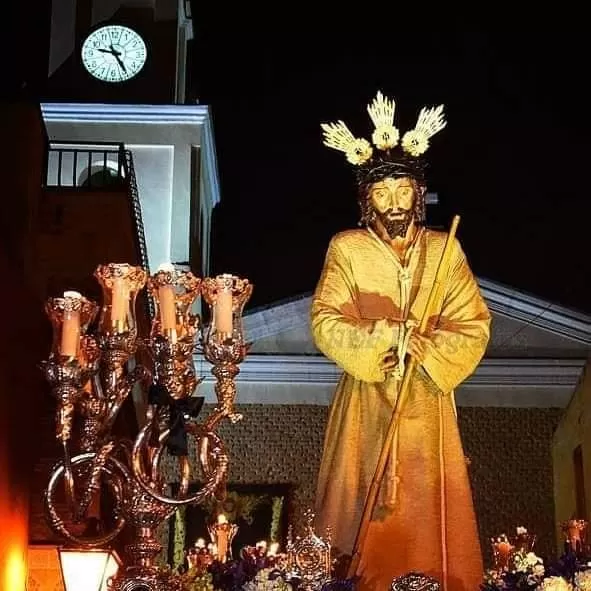 Para finalizar el cortejo, el Cristo de la Salud y Misericordia, una imagen de madera policromada que representa a Jesús en su presentación al pueblo (ECCE HOMO) con corona de espinas, caña en la mano, túnica blanca y clámide roja.