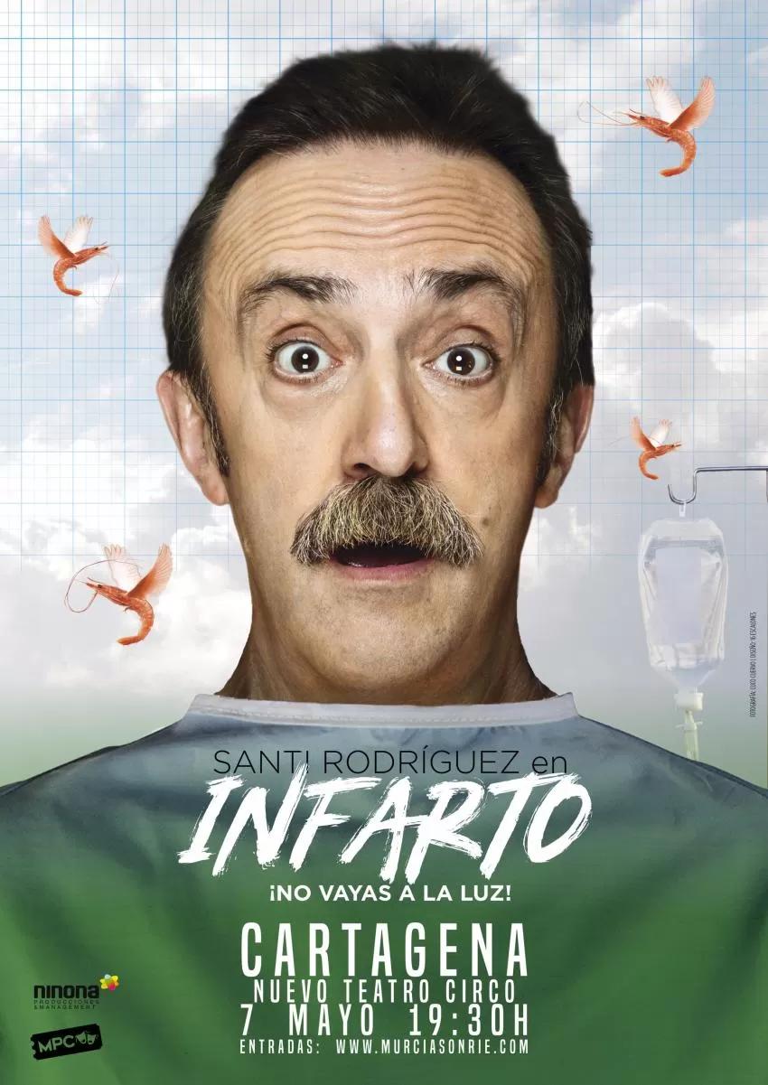 En 'Infarto, ¡No vayas a la luz!', Santi Rodríguez cuenta con humor como burló la muerte. El humorista ha creado, de una mala experiencia personal, este espectáculo cómico con el que vuelve este viernes, a las 19.30 horas, al Nuevo Teatro Circo de Cartagena.