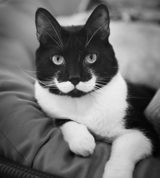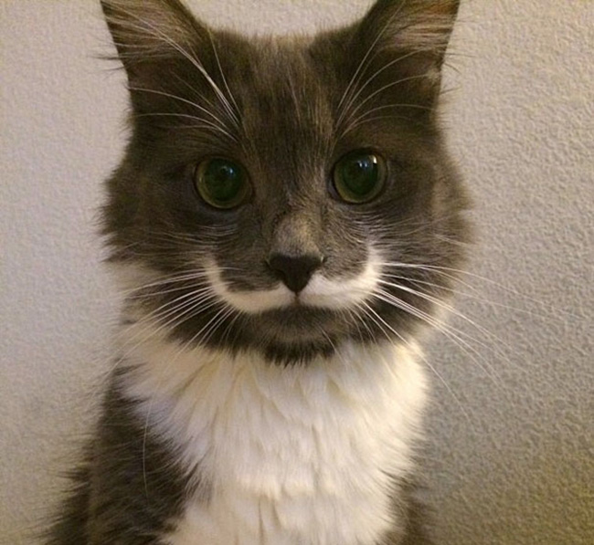 Aunque luzca mal encarado, no podemos tomar en serio a este gracioso gatico con su mancha en los labios, al estilo de un antiguo bigote francés.