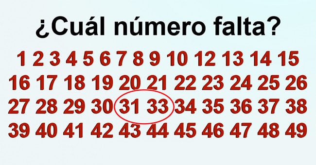 Afirmativo, se trata del número 32 el que fue quitado en la imagen. ¡Ya que tú lo has logrado, te invitamos a compartir el articulo con otros amigos, para ver quién es más rápido!