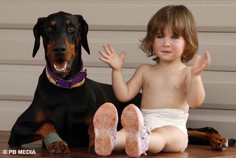 Charlotte, una pequeña de tan solo 17 meses de edad jugaba en el jardín con su nueva mascota, un perro de raza doberman llamado Khan. La familia Svilicic lo había adoptado hace solo 4 días porque su dueño anterior lo maltrataba y después de tanto maltrato simplemente lo abandonó. Este perrito se encariño tanto con su amiga Charlotte, que lo que sucede después de estar jugando en el jardín, es verdaderamente impresionante e inolvidable.