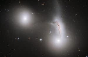 A pesar de que son los objetos màs dispersos de todo el universo, aunque no lo creas las galaxias chocan y no son muy agresivos como se pensaría. El gran telescopio Hubble ha tomado una fotografía ha tomado muchos pares de galaxias en colisión. Al igual que muchas cosas, no hay ejemplos que sean exactamente iguales. Esta es una de las galaxias mas llamativas la galaxia Smash-Up imágenes hasta la fecha.  La galaxia que antes se parecía a la via lactea ahora esta atrapada en una batidora cósmica. Una hermosa imagen tomada por el Hubble ¡Hermoso!.