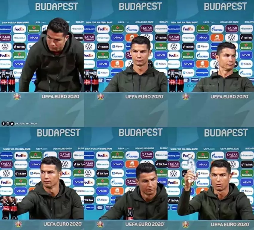 Una rueda de prensa previa al debut en la Eurocopa de un país nunca tuvo la repercusión que ha tenido la de Portugal, al menos económicamente. El simple gesto de Cristiano Ronaldo moviendo dos botella de Coca-Cola hizo caer a la empresa 4.000 millones de dólares.