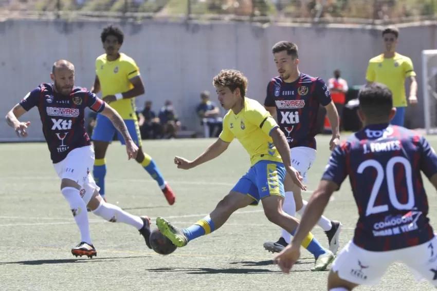 Después de alguna intentona visitante, llegaron los diez minutos fatídicos en los que el filial amarillo sentenció el partido. Fueron Siverio en el 25' y posteriormente Juan Fernández con un doblete en el 32' y 35', los que alimentaron las dudas azulgranas. El Yeclano no conseguía aguantar el ágil ritmo de Las Palmas y con muchísima facilidad, los locales asentaron una goleada en 45 minutos a los de Sandroni.