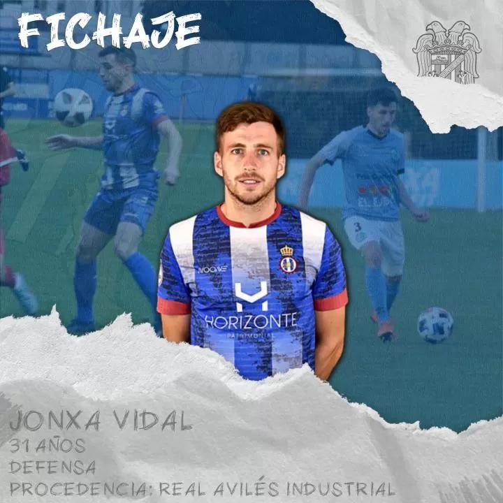 El Águilas Fútbol Club ha cerrado hoy el fichaje de Jon Xabier Vidal Alonso (más conocido como Jonxa Vidal o simplemente Jonxa), su segunda incorporación de este período invernal. El jugador, de 31 años, llega procedente del Real Avilés de Segunda RFEF tras desvincularse definitivamente esta misma mañana. Jonxa Vidal se desenvuelve habitualmente como lateral izquierdo, si bien, a lo largo de su carrera, ha ocupado otras demarcaciones como el extremo zurdo.
