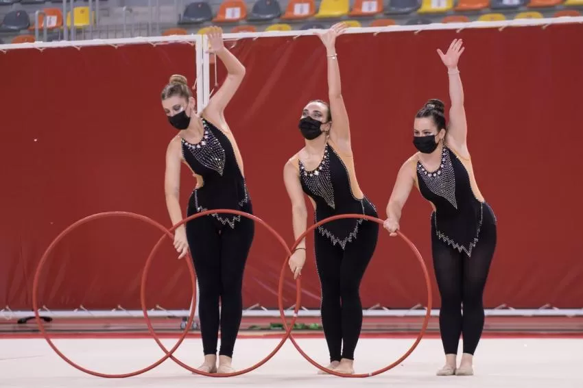 Los deportistas acompañados de sus entrenadores han realizado originales coreografías que ha sido el deleite de sus familiares y amigos que han podido asistir a las gradas del Palacio y han animado con aplausos y multitud de fotos.