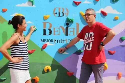 La regidora ha informado que "tras la apertura al público del rocódromo, que cuenta con ocho itinerarios diferentes definidos por colores, completamos nuestra oferta deportiva local". Para habilitar este espacio se han instalado cerca de doscientas presas en una extensión de tres metros y medio de alto por once de ancho y se ha pintado un mural con motivos naturales. "Queríamos mejorar el entorno y hacerlo nuestro, por eso se han ilustrado también elementos identificativos de Beniel, como son Los Pinochos", ha explicado la alcaldesa.