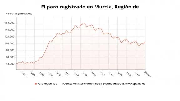 En términos relativos, la bajada del paro en el mes de septiembre en la Región fue del 0,57 por ciento respecto al mes de agosto. El número de desempleados creció en términos interanuales, de forma que en los últimos doce meses aumentó en Murcia en 21.846 personas. Esto es un 22,64 por ciento más, frente 22, 62 por ciento nacional.