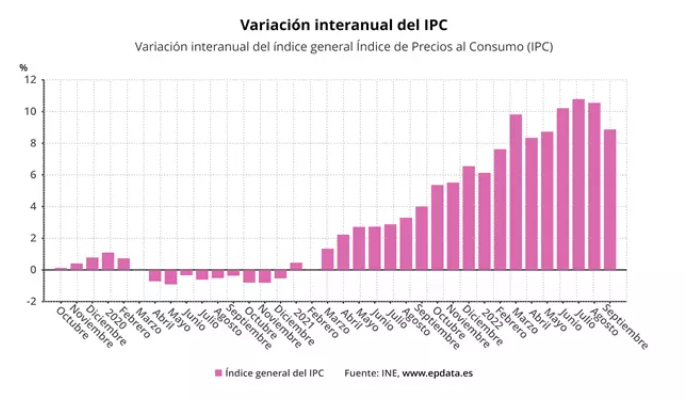 El dato de septiembre es 1,9 puntos inferior al pico alcanzado el pasado mes de julio, cuando el IPC se situó en el 10,8%, su nivel más alto desde septiembre de 1984.