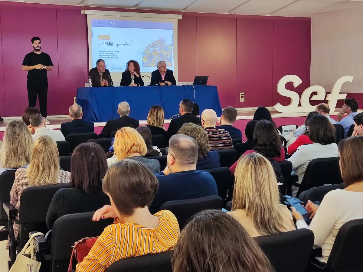 Pilar Valero participó hoy en la jornada informativa, organizada por el SEF, para involucrar a las empresas en el impulso de la inserción de las personas con discapacidad. Con el título 'Responsabilidad social de las empresas y la colaboración con los centros especiales de empleo', dicha jornada ha reunido a empresas, asesorías, entidades y al personal del SEF para abordar las claves que favorezcan la inserción social y laboral de las personas con capacidades diferentes. "Con este evento queremos poner en valor el enorme potencial que las personas con discapacidad aportan al tejido empresarial, y acercar información, recursos y experiencias que permitan avanzar hacia un mercado laboral más inclusivo", aseguró la responsable del SEF.