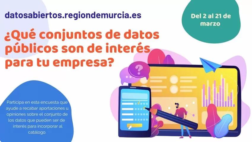Con el deseo de someter dicho catálogo a una gran participación de todos los sectores interesados, la Consejería de Transparencia, Participación y Administración Pública, a través de la Dirección General de Gobierno Abierto y Cooperación, lanza esta consulta pública dirigida a las empresas de la Región de Murcia, que estará disponible hasta el 21 de marzo de este año. Se busca así recabar aportaciones u opiniones sobre el conjunto de los datos que pueden ser de interés para incorporar en el futuro catálogo.
