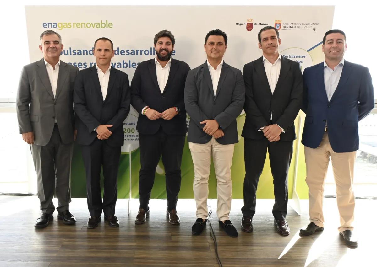 Tres de los más de diez proyectos de biometano proyectados en España se van a realizar en la Región de Murcia, “y son estas inversiones las que contribuyen a generar progreso social y crecimiento económico duradero”, afirmó el presidente. El acto también contó con la presencia del consejero delegado de Enagás Renovable, Arturo Gonzalo; y los alcaldes de San Javier, José Miguel Luengo; y de Las Torres de Cotillas, Pedro José Noguera.