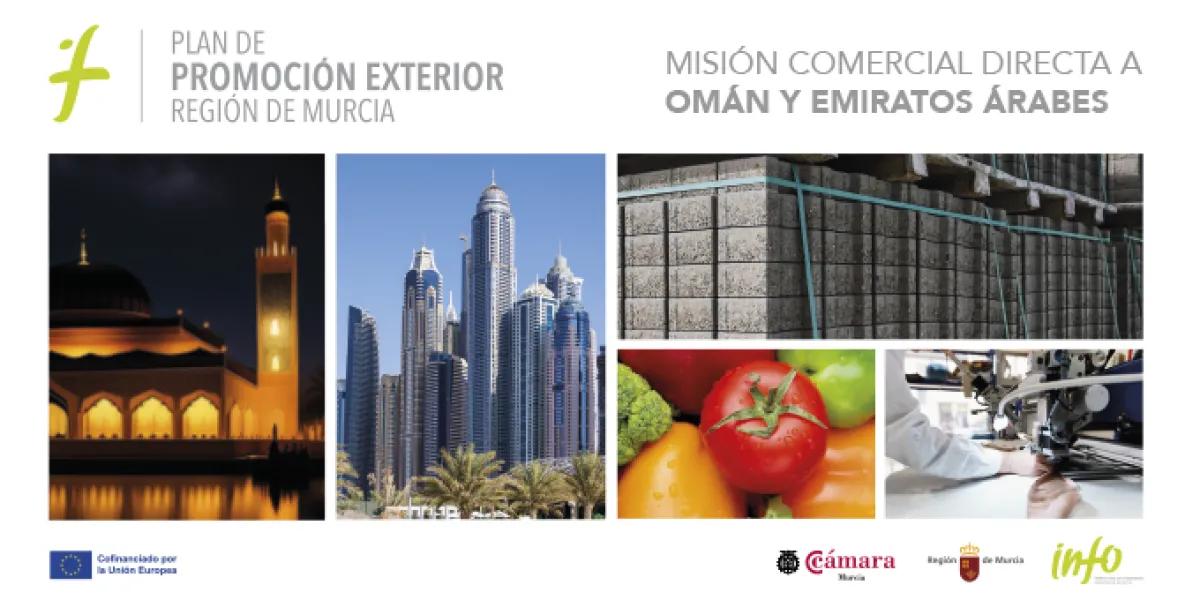 Para seguir intensificando las exportaciones es esta área geográfica clave, la Consejería de Empresa, Empleo y Economía Social organiza, a través del Instituto de Fomento (Info) y la Cámara de Comercio de Murcia, una misión comercial directa a los Emiratos Árabes Unidos y a Omán, de carácter multisectorial, que se realizará del 15 al 19 de diciembre. Las empresas interesadas pueden inscribirse en la Sede Electrónica del Info hasta el 20 de noviembre.