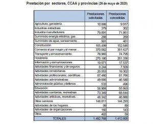 A fecha 26 de mayo, hay 1.412.605 autónomos con esta prestación concedida, el 94,62% de los 1.492.768 trabajadores por cuenta propia que la han solicitado. Del total, el 2,13% está en trámite y únicamente el 3,24% restante han resultado denegados.