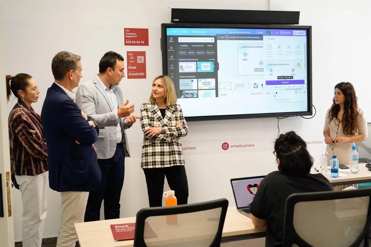 La consejera de Política Social, Familias e Igualdad, Conchita Ruiz, ha visitado la Escuela de Negocios y Administración de Empresas (ENAE Business School), en Murcia, donde ha destacado la importancia de que las empresas apuesten por el talento femenino y fomenten medidas que favorezcan la promoción de las mujeres en los distintos departamentos de producción y toma de decisiones.
