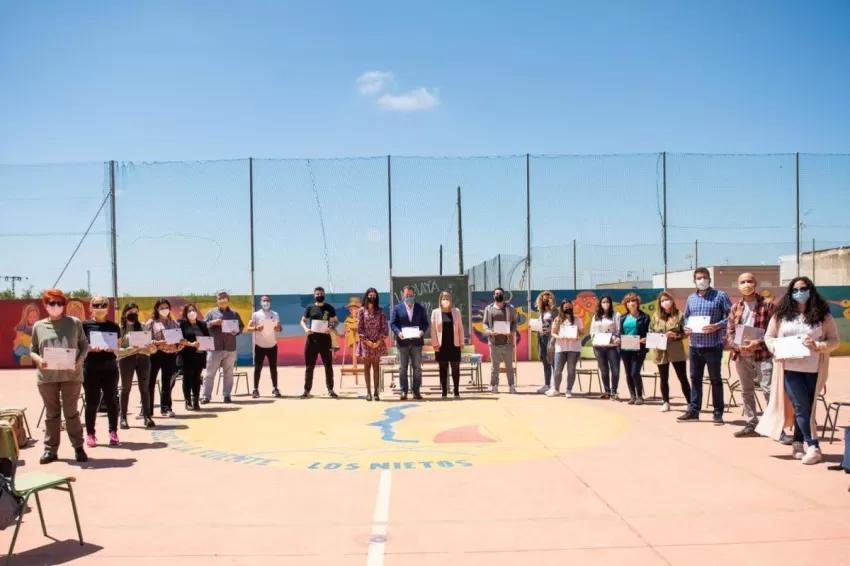 La vicealcaldesa, Noelia Arroyo, ha acompañado a la directora general del Mar Menor, Miriam Pérez, a la entrega de menciones de reconocimiento para todos los profesores de este centro que han formado parte del proyecto. A la cabeza, su director, Alfonso Vera, que con esta iniciativa ha conseguido la nominación al Global Teacher Prize 2021.