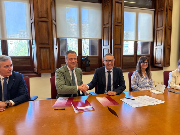 El consejero de Presidencia, Portavocía, Acción Exterior y Emergencias, Marcos Ortuño, y el rector de la UMU, José Luján, firmaron hoy el convenio cuyas bases regulan la creación de este nuevo centro.