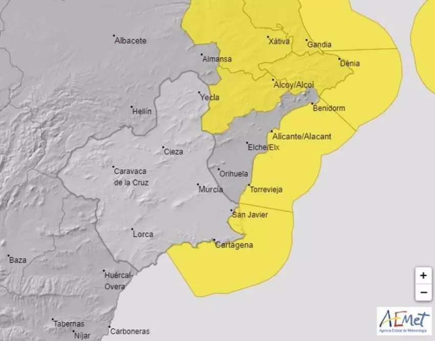 La Agencia Estatal de Meteorología (Aemet) ha emitido un aviso amarillo por fenómenos costeros para este jueves, 14 de abril, en la zona del Campo de Cartagena y Mazarrón.
