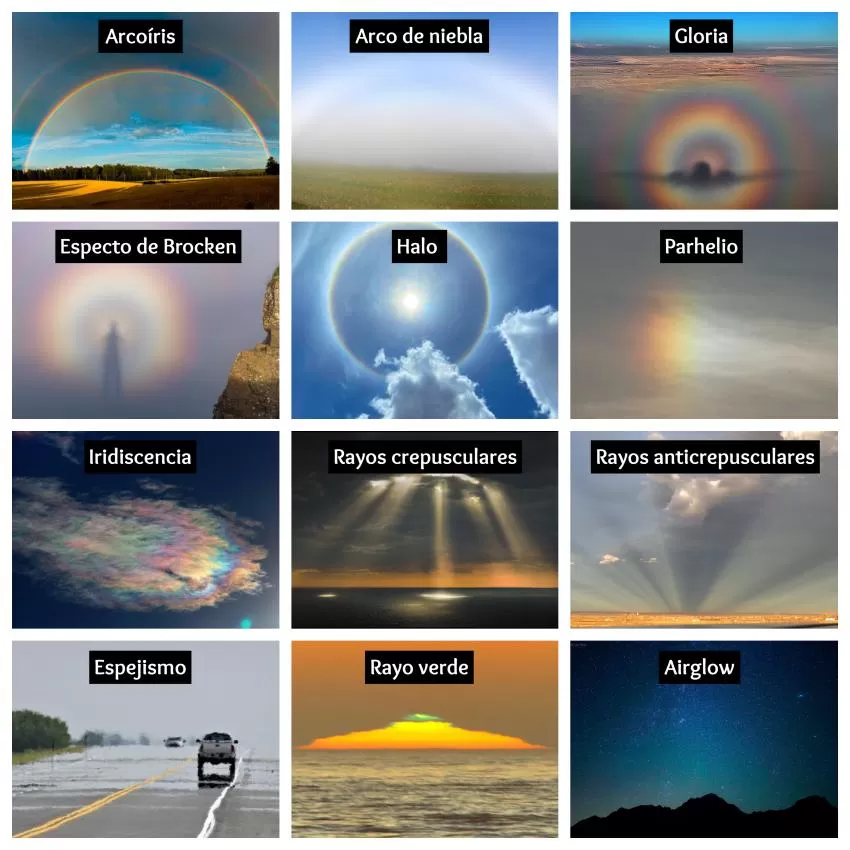 Collage de los fotometeoros explicados.