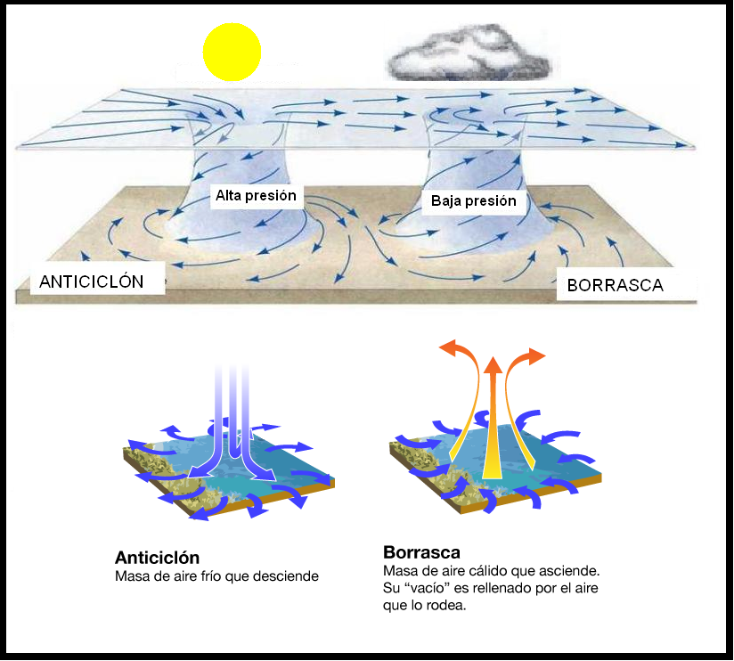 Gráfico del funcionamiento de los Anticiclones y las Borrascas.