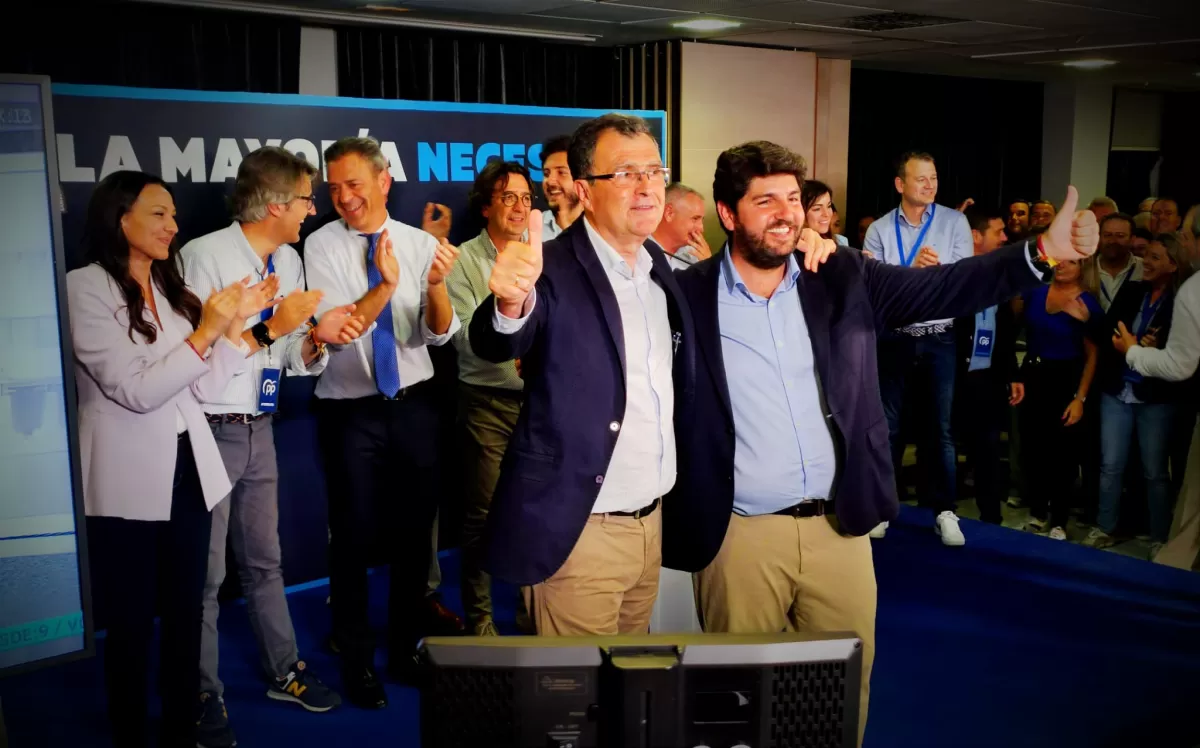 López Miras ha hecho estas declaraciones acompañado por el candidato del PP al Ayuntamiento de Murcia, José Ballesta, cuya lista ha obtenido la mayoría absoluta, ante numerosos miembros de su equipo de campaña y de militantes del partido que se han acercado hasta el lugar de celebración, el hotel Sercotel Amistad, en el centro de la capital de la Región.