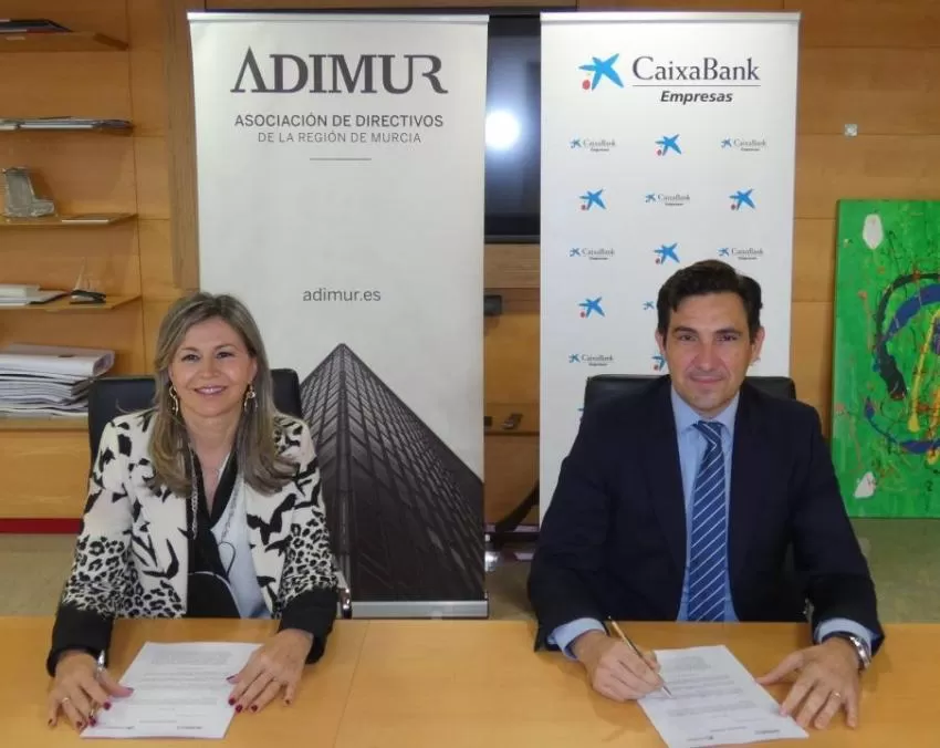 CaixaBank ha firmado un acuerdo de colaboración con la Asociación de Directivos de la Región de Murcia (ADIMUR) mediante la que la entidad financiera patrocinará diversas actividades como son una masterclass con ponentes relevantes, un almuerzo de trabajo, congresos, el 'Observatorio del Directivo', así como los 'Premios directivo del año' que reconocen a los mejores directivos de la Región.