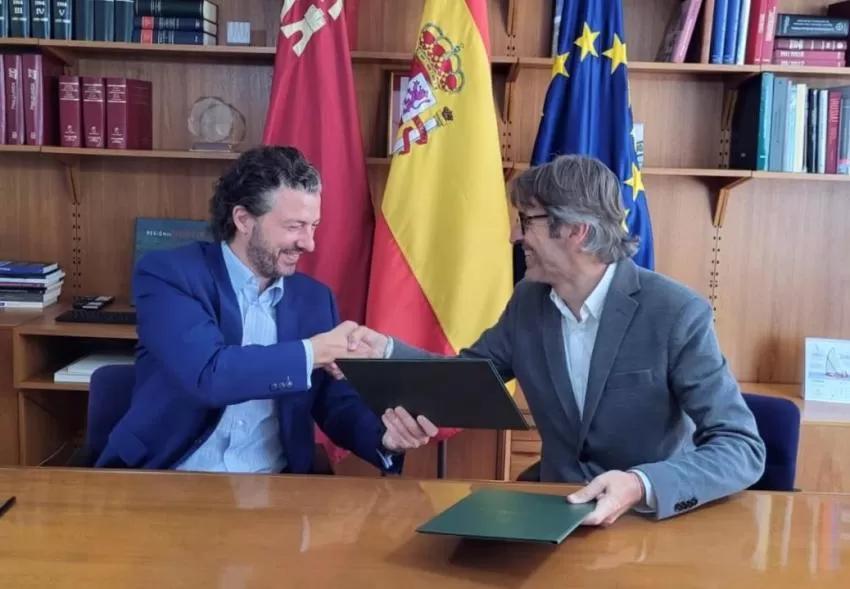 El consejero de Economía, Hacienda y Administración Digital, Luis Alberto Marín, y el presidente de la Federación Regional de Empresas del Metal de Murcia (FREMM), Alfonso Hernández, han suscrito este miércoles el convenio para el desarrollo de acciones conjuntas orientadas a la promoción y fomento del uso de datos estadísticos en proyectos de investigación y en el mundo empresarial.