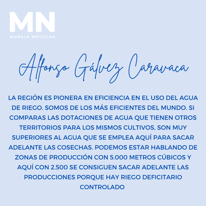 Totalmente, la Región es pionera en eficiencia en el uso del agua de riego. Somos de los más eficientes del mundo. Si comparas las dotaciones de agua que tienen otros territorios para los mismos cultivos, son muy superiores al agua que se emplea aquí para sacar adelante las cosechas. Podemos estar hablando de zonas de producción con 5.000 metros cúbicos y aquí con 2.500 se consiguen sacar adelante las producciones porque hay riego deficitario controlado, se aplican exactamente los nutrientes que necesita la planta a través del agua de riego, que está milimetrado el gasto que se hace para los cultivos y, en ese sentido, los agricultores de la Región de Murcia más no pueden hacer para usar el agua estrictamente necesaria que requieren los cultivos.