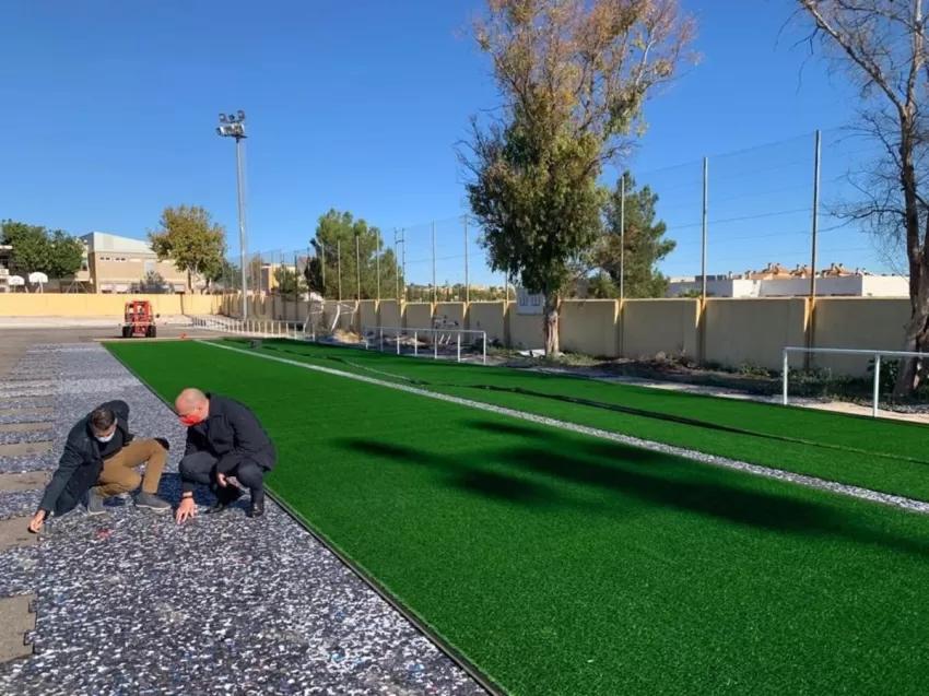 La Concejalía de Deportes del Ayuntamiento de Murcia trabaja ya en hasta una decena de nuevas obras para los próximos meses. Entre ellas están las de los campos de fútbol de El Palmar, El Puntal y Cabezo de Torres. En los dos primeros se llevará a cabo la retirada del césped artificial actual y sustitución por otro de última generación, además del suministro e instalación de protectores en valla perimetral y cañones de riego. Para ello se invertirán 201.607,85 y 133.889,49 euros.