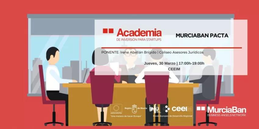 La segunda sesión de la Academia de Inversión Murcia-Ban para startups aborda dos nuevos temas claves para el éxito de un proyecto empresarial, como son los "Pactos de inversión y cómo crear equipos profesionales de largo recorrido"