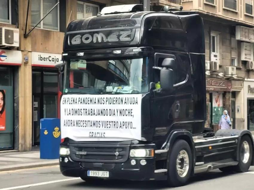 La protesta, en la que los vehículos de gran tonelaje marchan a velocidad muy reducida, forma parte de las movilizaciones del sector del transporte convocadas a nivel nacional para exigir al Gobierno central que tome medidas contra la subida de precio de los combustibles.