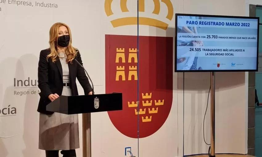 La Comunidad ha destacado este lunes que la Región de Murcia cuenta con 25.703 desempleados menos que a finales de marzo de 2021., mientras que en estos últimos doce meses la cifra de parados ha caído un 21,16 por ciento.