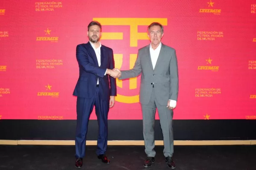 El presidente de la Federación de Fútbol de la Región de Murcia, José Miguel Monje Carrillo, y el CEO de LEVERADE, Antonio Romero, han firmado un acuerdo histórico para el fútbol regional de España.