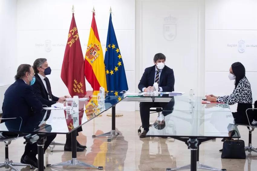 El jefe del Ejecutivo regional, Fernando López Miras, ha recibido este lunes al director del Instituto de la Empresa Familiar, José Luis Blanco, y al presidente de la Asociación Murciana de la Empresa Familiar (Amefmur), José María Tortosa, con los que ha analizado el impacto de la pandemia en el sector y a quienes ha trasladado el apoyo del Gobierno autonómico para seguir coordinando medidas de reactivación económica.