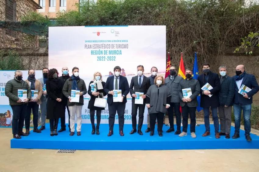 El presidente de la Comunidad, Fernando López Miras, ha presentado este viernes el nuevo Plan Estratégico de Turismo 2022-2032, con el que el Gobierno regional va a movilizar en los próximos diez años 210 millones de euros "para transformar el modelo turístico, ayudar a las empresas que peor lo están pasando y consolidarnos en los mercados internacionales", así como para lograr visitantes "todo el año y en toda la Región".