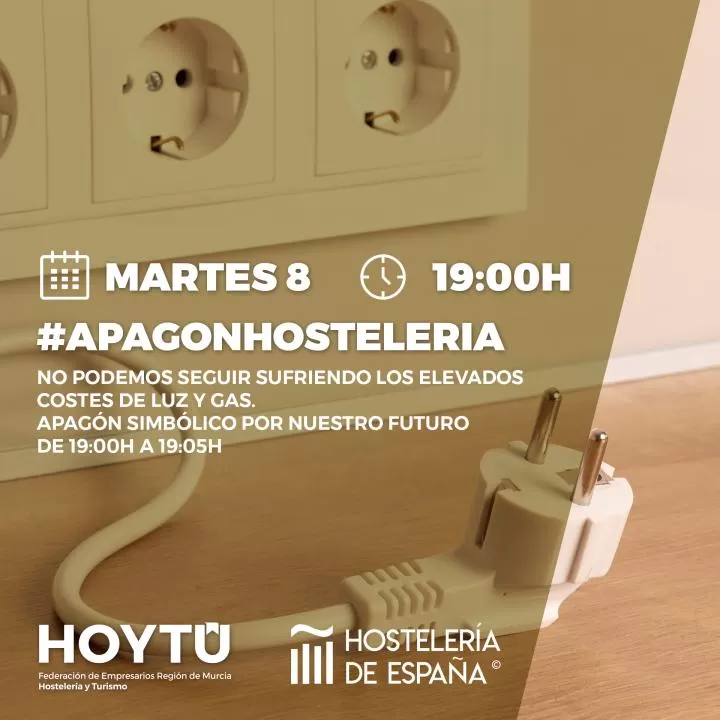 La Federación Regional de Empresarios de Hostelería y Turismo Región de Murcia (HoyTú) se sumará al apagón simbólico de luces convocado por Hostelería de España ante la "grave" situación del sector por la subida de precios de los costes energéticos.