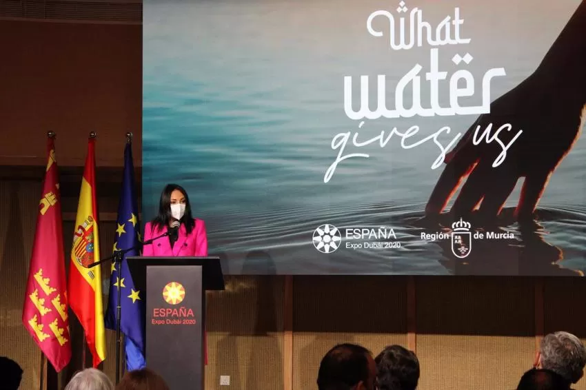 Tras la inauguración oficial de la Semana de la Región de Murcia en la Expo de Dubái, la consejera, acompañada por el director del Instituto de Fomento (INFO), Joaquín Gómez, y por el secretario general de la Consejería de Agua, Agricultura, Ganadería, Pesca y Medio Ambiente, Víctor Martínez, inaugurará este lunes por la tarde una jornada sobre gestión inteligente del agua y su aprovechamiento en el Caribe, el Mediterráneo y el Golfo de Arabia.