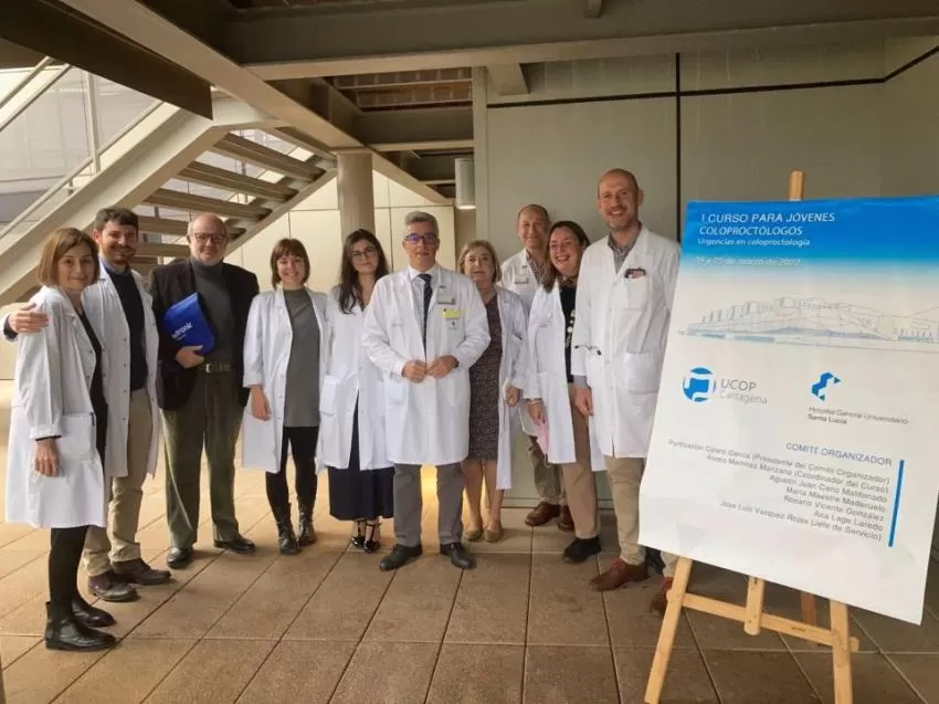 Medio centenar de especialistas asisten este jueves y viernes en el Hospital Santa Lucía, en Cartagena, al I Curso para jóvenes coloproctólogos, que está organizado por la doctora Purificación Calero García y el doctor Álvaro Martínez Manzano, pertenecientes a la Unidad de Coloproctología del Servicio de Cirugía General y Digestivo del Complejo Hospitalario Universitario.