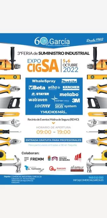 Comercial Industrial García, celebrará los próximos 5 y 6 de octubre la tercera edición de la mayor feria de suministros industriales que se organiza en la Región de Murcia.