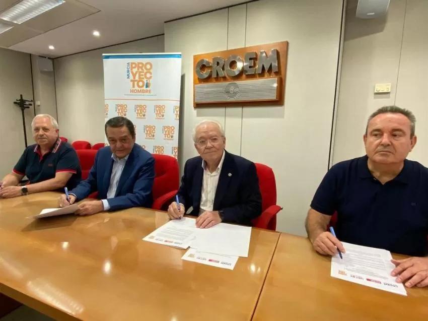 La Fundación Solidaridad y Reinserción (Proyecto Hombre Murcia), la Confederación Regional de Organizaciones Empresariales de Murcia (CROEM) y las dos organizaciones sindicales mayoritarias, UGT y CCOO, han firmado este martes un convenio de colaboración para coordinar acciones que favorezcan la prevención del consumo y las adicciones en el ámbito laboral con la finalidad de mejorar la salud y la calidad de vida de las personas trabajadoras.