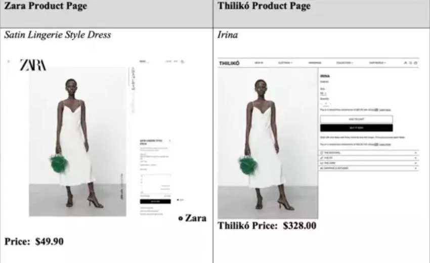 Zara, la marca insignia de Inditex, ha denunciado a la marca estadounidense Thilikó por vender su ropa como propia a unos precios "exorbitados", hasta casi siete veces más caros, según revela The Fashion Law, medio que ha accedido a la denuncia.