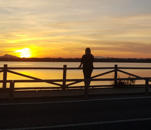 Mari Carmen, contemplando un atardecer de verano en las Salinas de San Pedro del Pinatar
